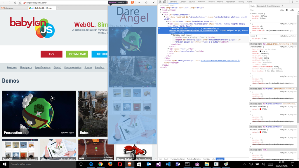 – Navigate once again to http://www.babylonjs.com and open the extension to test it.